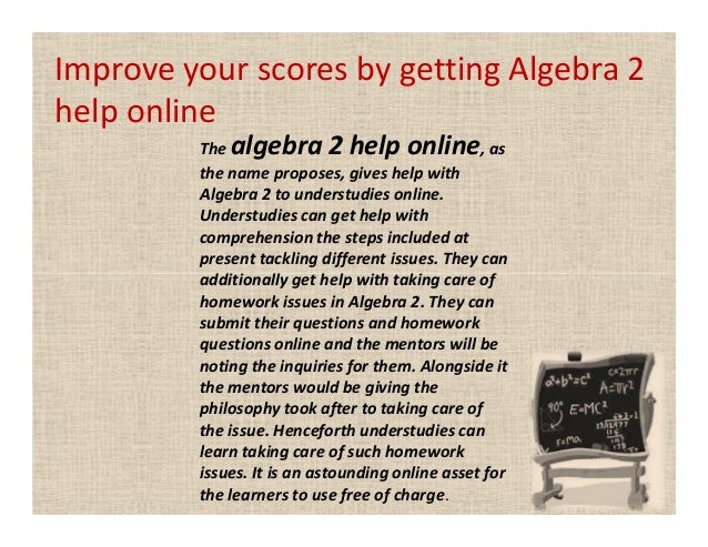 Our Algebra 2 tutors have you covered with our complete online help for Algebra 2, whether it's for standard Common Core Algebra 2, EngageNY (Regents Examination) or EOC Algebra 2. Learn Algebra 2 with ease! Aligned with your class or textbook, you will get Algebra 2 help on topics like Trigonometry, Factoring, Functions, Sequences and Series, Inequalities, Probability, Transformations /5(17) Varsity Tutors’ free Algebra 2 Help can assist you in understanding any topic which you have not completely mastered before they begin to cause you trouble in understanding new material in your course. Our Algebra 2 content is divided into specific topics to Free algebra - Wikipedia